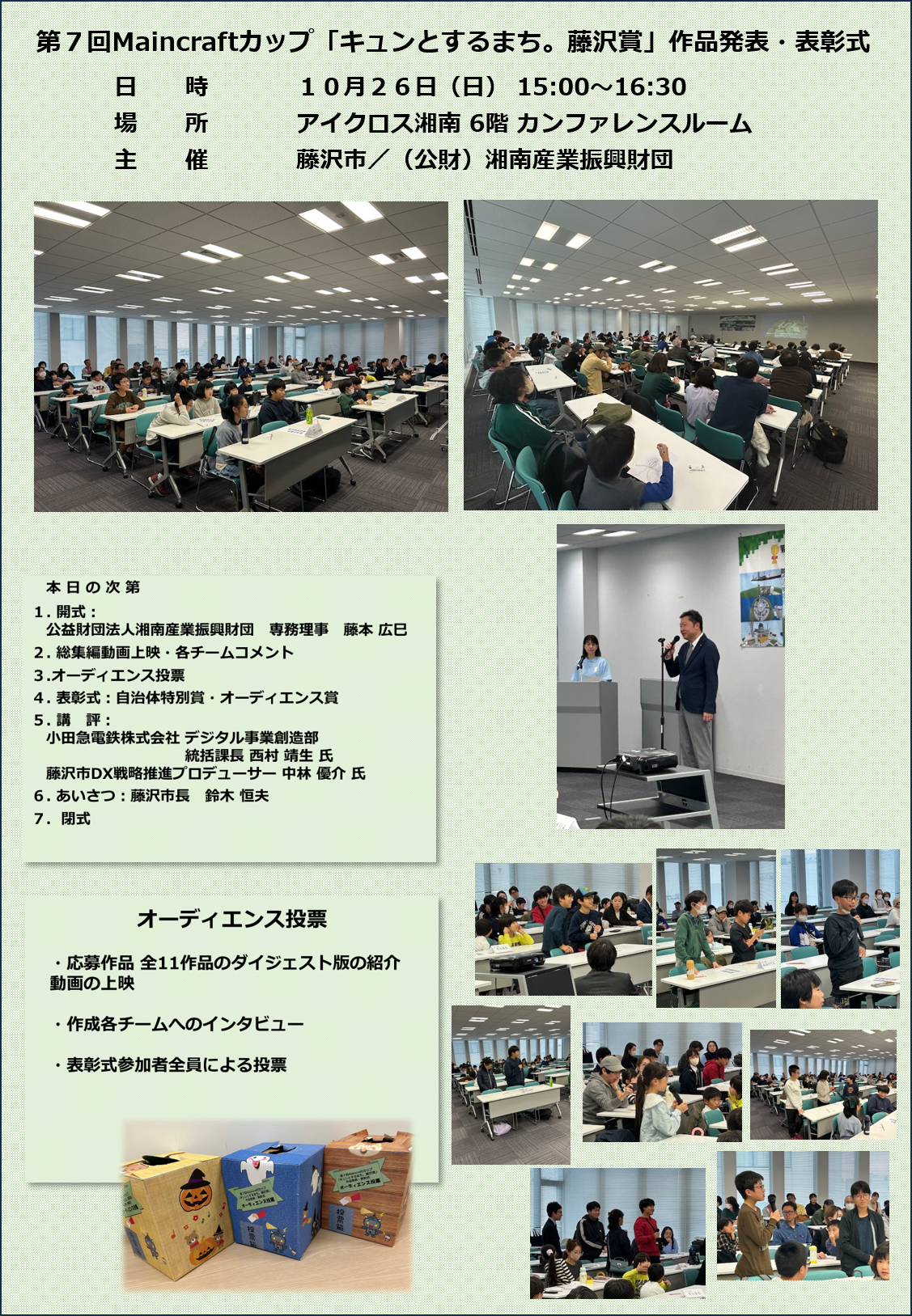 2025年10月26日(日)、第7回 Minecraftカップ「キュンとするまち。藤沢賞」作品発表・表彰式を開催しました。
